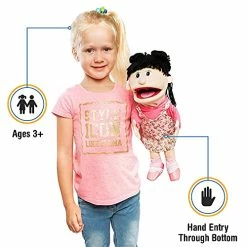 My daughter loves her hand puppet. She said the puppet was adorable and fun. The mouth and hands are easy to move. She loves the hairstyle. The face is sweet. She liked the outfit that came on her.