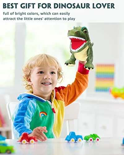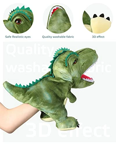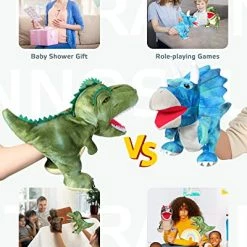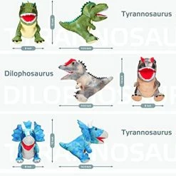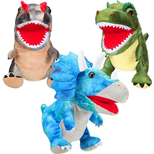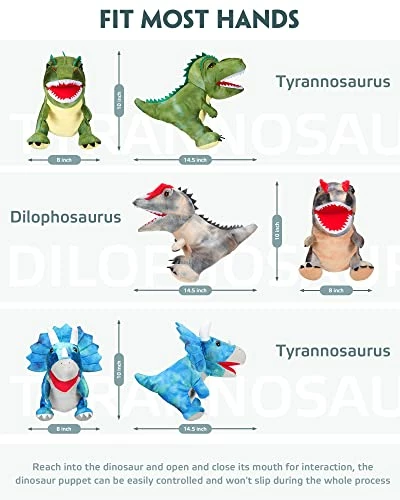 - Package List: the package includes 3 pieces of dinosaur hand puppets in different images, including tyrannosaurus, triceratops and dilophosaurus, you can interact with your family members with them or share with friends to enhance the relationships; WARM NOTE: the plush toy is vacuum packaged, and it can be restored by treating it slightly with water vapor sprayed from the garment ironing machine