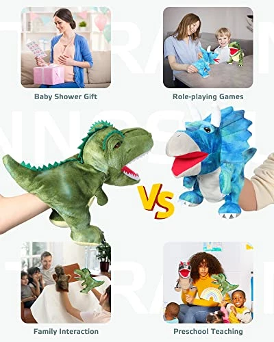 - Fit Most Hands: the dinosaur puppets measure about 30 cm/ 12 inches in height, which can fit most hands; Reach into the dinosaur and open and close its mouth for interaction, the dinosaur puppet can be easily controlled and won’t slip during the whole process