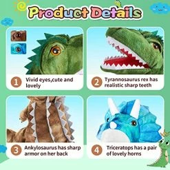 - ใPlush Interactive Toysใ The funny interactive toys for kids includes tyrannosaurus, triceratops and aetosaurus plush dinosaur puppet, parents can play with your kids and bring more companionship and joy to your kidsโ growth. Cute stuffed animals makes kids away from TV and enjoy their time playing with their friends, and acting a variety of roles to bringing up their creativity and expression, improve social skills.