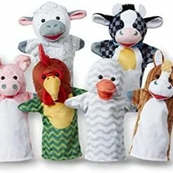 - ENTERTAINING PUPPET SET: The Melissa & Doug Barn Buddies Hand Puppets set contains 6 soft hand puppets, including a cow, sheep, horse, duck, chicken, and a pig; an insert in the package serves as a puppet theater.