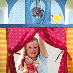 - A whimsical castle scene sets the stage for creative play. Time to grab your puppets (sold separately) and let your imaginations run wild! Use the practical oval pocket for custom signage i.e. the name of your show and upcoming showtimes!