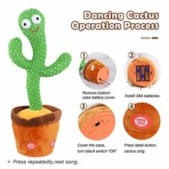 - ใEducational Gift Toysใ๏ผTalking cactus toy gift for your kids or friends.This funny toy will definitely make people who reaceive it laught! Mimicking cactus toy can record what you say and keep playing.Dancing singing cactus plush toys,Toys for babies toddlers kids 3 months and up,It can slso as a room decoration.