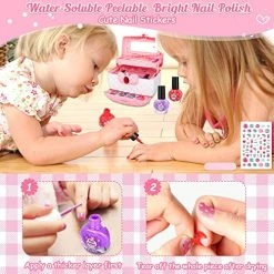 - ?【Stimulate Creativity & Entertainment Makeup Set】: The little girl began to pursue beauty, and the kid’s makeup toy can satisfy the wishes of the princess. Girls can get a real makeup experience while improving their hands-on ability. Girls can have nail polish sets and nail stickers that provide different manicure experiences and stimulate children’s creativity and imagination. Makeup can help children improve their aesthetic ability and explore the infinite possibilities of beauty together.