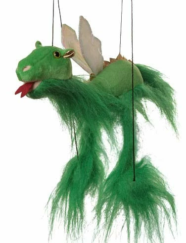 My students love this little character, which they can bring to life for storytelling, creative play, and fantasy adventures. He is a great rainy day amusement when paired with other puppets and story development activities. Learning to express one’s thoughts and feelings through a marionette offers an individual student a chance explore ideas, cause and effect, and even logical thinking.It’s best to have enough marionettes for each member of your class, so that everyone can directly participate. [Remember to devise a fair way to distribute the characters among class members.] The class can be divided into groups, and each group can be responsible for developing a story that can be eventually shared with the whole class.This green dragon works well with other dragon characters, wizard puppets, and other storybook / fantasy puppets.