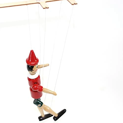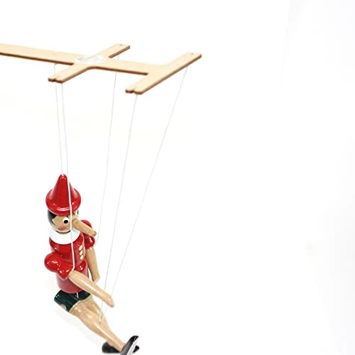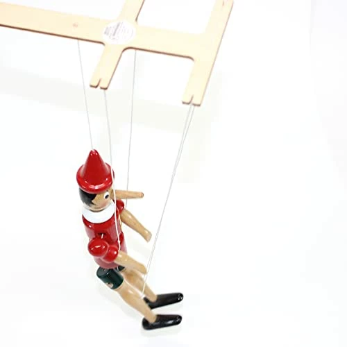 - Pinocchio’s arms and legs are put into motion by moving the strings.
