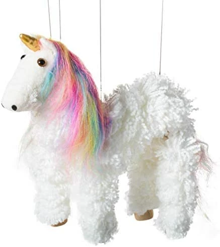 - Puppet itself measures 10″ in height and 7″ in length. Height from the marionette bar to the unicorn hooves measures 27 inches.