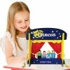 - COMPLETE PUPPET THEATER – This tabletop puppet theater comes with everything you need for your puppet show. Includes: sturdy cardboard theater, 2 LED clip-on lights (batteries included), 12 customizable felt puppets, puppet sticks, stickers, rhinestones, chalkboard marquee and yellow chalk.