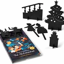 - IMAGINATION TOYS – The Nutcracker Papaton shadow puppet theater for kids includes 14 characters and props (2 x Nutcracker silhouettes, Marie, Uncle Drosselmeyer, the Mouse King, baby mouse, Fritz, Mama, Prince Charming, a slipper, sword, a decorated Christmas tree, presents, and a ladder) plus prop stands.