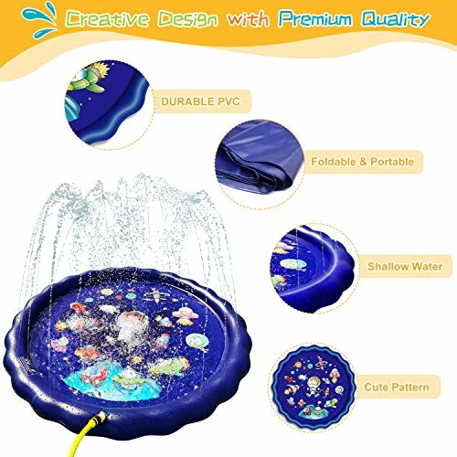 Overall summary – fun summer toy for kids. Good quality and will be in use a lot during summers. Recommended. Let kids be kids.Pros – not much to assemble, just plug in garden water hose and kids summer water spray pad/sprinkler/fountain is ready. Water goes up to approx 4 feet for me but depends upon incoming water pressure. It has withheld kids abuse for good 7- 8 times now and no issues so farCons- not a lot except sometimes due to low pressure in beginning water does not spray into pad but it rectifies with in minutes when water pressure is good.