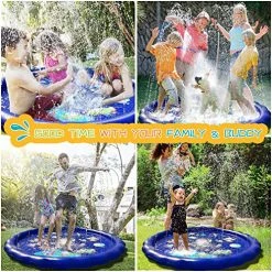 Thought this was going to be a flop but decided to try it anyway. Iβm really pleased with the durability my dog can get in it and I donβt have to worry about him poking a hole in it, and the fact that the water sprinkler on the sides get to be about 3 feet. Had more enjoyment out of this than I thought I would.