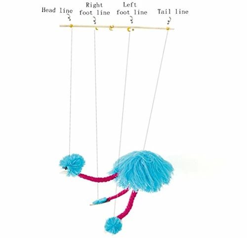 The ostrich is very easy to use. And when tangled, very easy to make it right. All appendages have separate strings and are attached to handle via elastics that come off easy to adjust tangles.